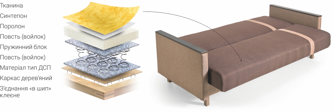 | • Бильця ДСП. • Без подушок. | • Одна містка ніша для білизни. |