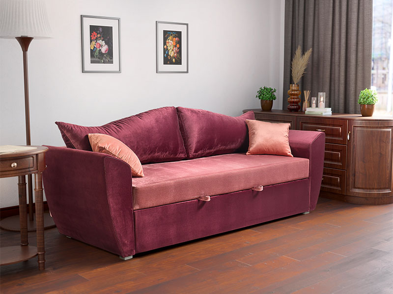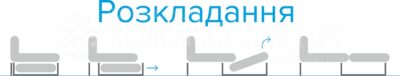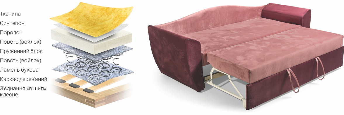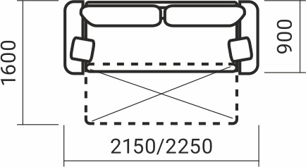 | • Два розміри спального місця 1800 мм та 1900 мм. • Без ніші для білизни | • Фігурні м’які бильця. • Дві великі та дві маленькі подушки. |
