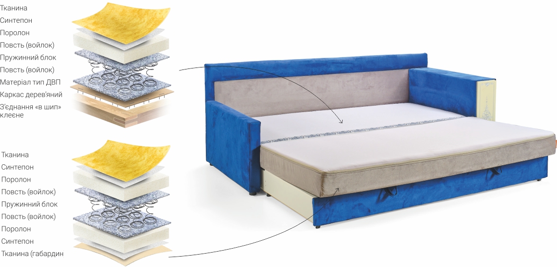 • Чохли для бокових подушок на блискавці.