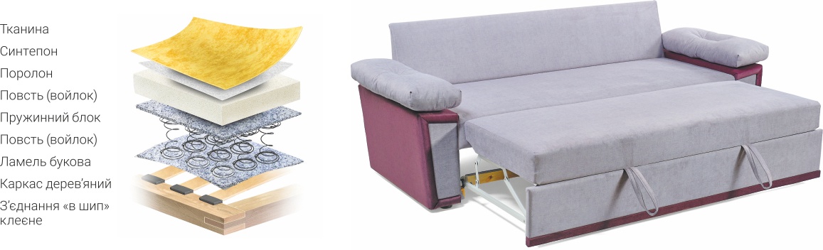 • Подушки на бильцях кріпляться на застібки-липучки.