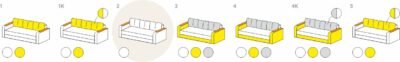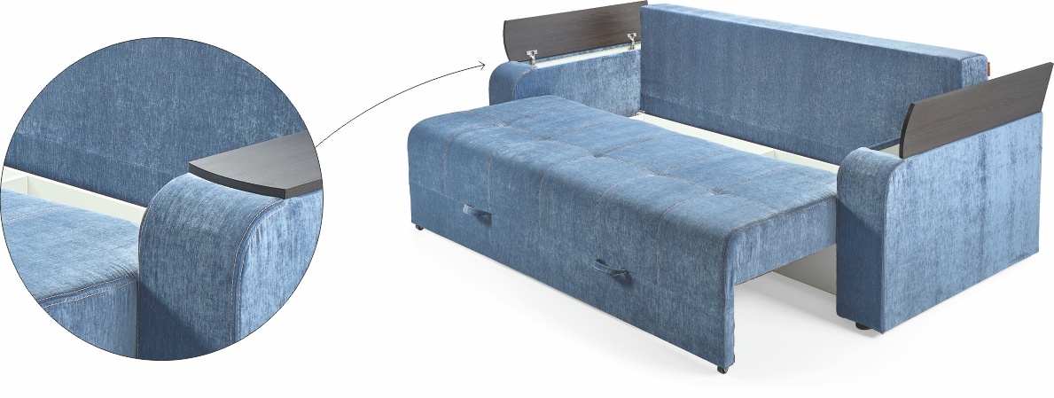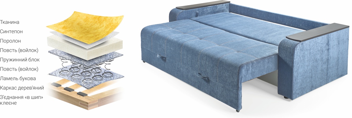 | • Накладки на бильцях. • Одна містка ніша для білизни. | • Три великі подушки. • Відкривні бильця з додатковими нішами всередині. |