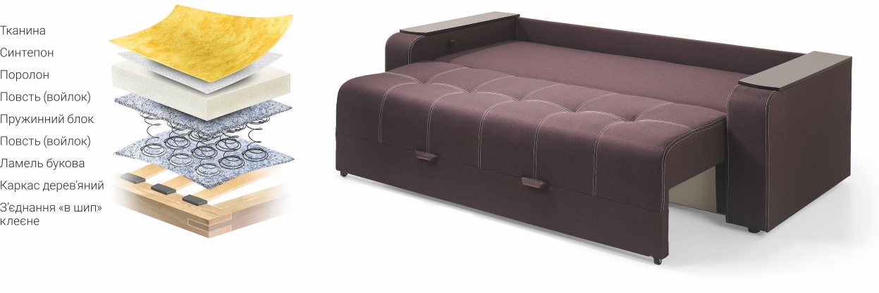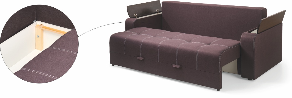 | • Накладки на бильцях. • Одна містка ніша для білизни. | • Три великі подушки. • Відкривні бильця з додатковими нішами всередині. |
