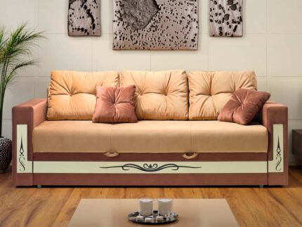 | • М’яке бильце. • Велика подушка. | • Декоративні накладки з фрезеруванням та патиною. • Розкладне |